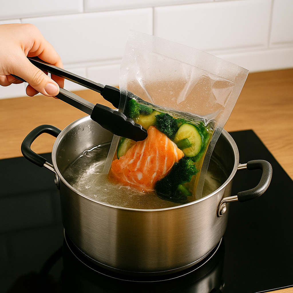 Mantieni la busta chiusa, in acqua calda, per un riscaldamento uniforme senza altera fibre o sapori.